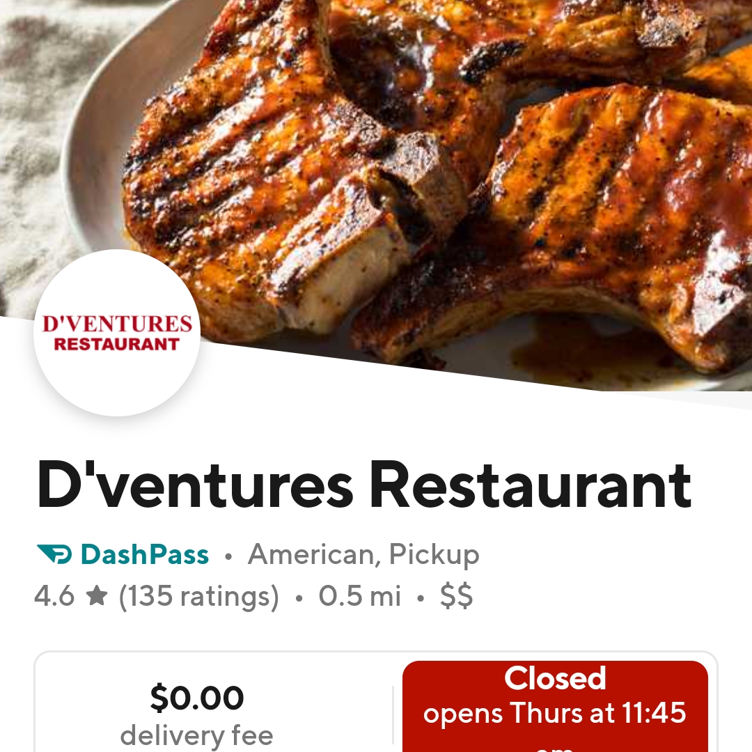 Don’t forget to save room for dessert! Their lineup, including Pecan Pie and Sweet Potato Pie, is sure to satisfy your sweet tooth. Patrons rave about the generous portions, vibrant flavors, and welcoming atmosphere. With friendly service and options for breakfast, lunch, and dinner, D'Ventures is a must-visit for all food lovers!